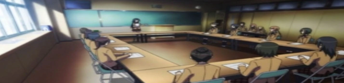 The Meeting Room (in Japanese kaigishitsu lit. meeting room) is where meetings take place. During the series, it is used by the Student Council when meeting with committee heads (such as Disciplinary Committee Chairman Kaede Igarashi), club heads (such as Newspaper Club Head Ranko Hata) and teachers.